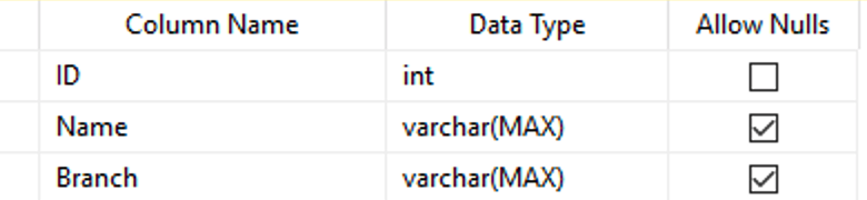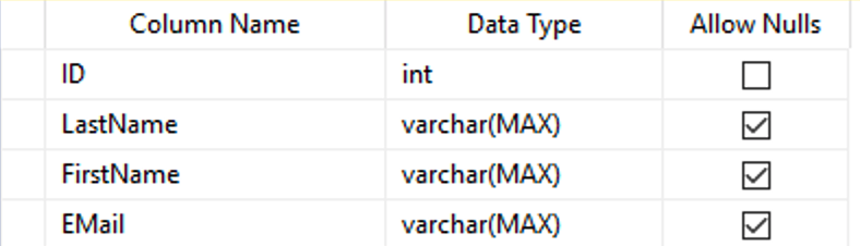 The following Microsoft SQL server tables can be produced in the data base “migration“:
