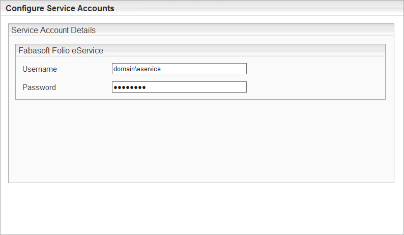- Specify an account which is used to run the Fabasoft Folio eService.
