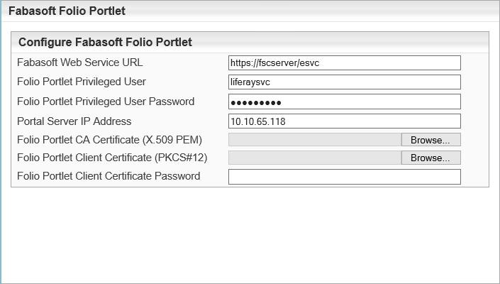 Note: If you want that the Folio Portlet Setup generates the client certificate leave these three fields blank.