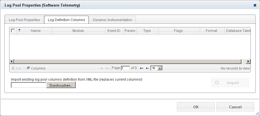 After these steps the columns of the imported log definition are available.