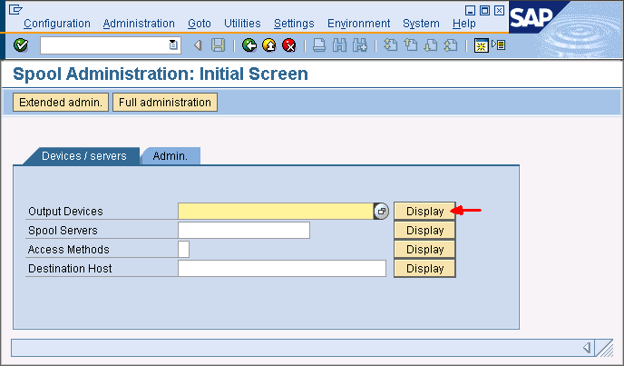 - Start the transaction “SPAD” and click “Display” next to Output Devices.
