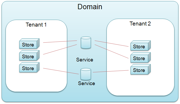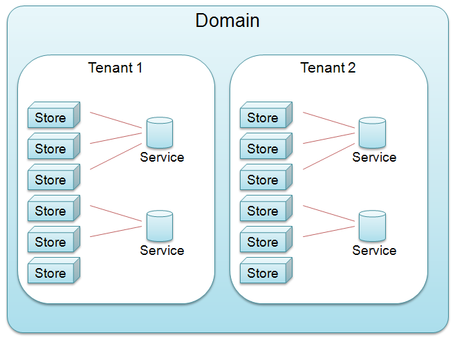 The domain configuration and administration may be delegated to the tenants to enable a decentralized administration or can still be handled centrally. The configuration of software components of a domain can be changed on a per tenant basis to customize the software for specific requirements of a tenant, independent from the domain configuration.