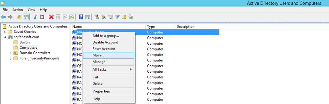 To move users or computers to an organizational unit, perform the following steps: